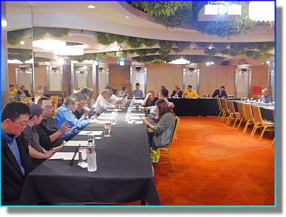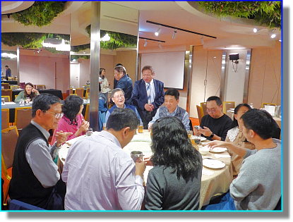在農藥登記部分,防檢署與農藥所的步調不一,在肥料管理法修法部分,緩慢中也有繼續前進,這次的會議,對公會各項財務報表檢視通過,提交大會審議,準時結束後進行餐敘,邀請的來賓也都陸續抵達,紛紛就座,晚宴開始,大家享用美食,舉酒相祝,席間人來人往,氣氛熱絡,直到晚宴結束。