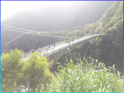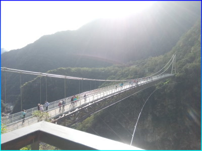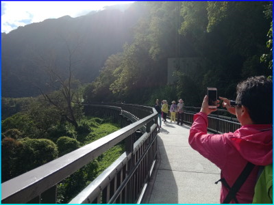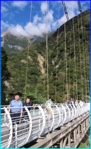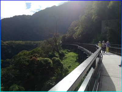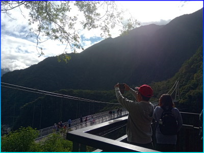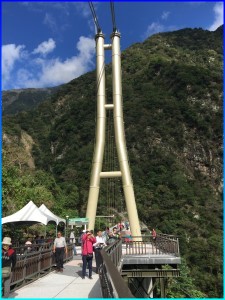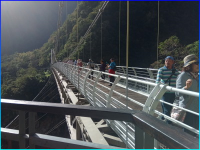 第二天一早吃過早餐,便集合出發,前往太魯閣,第一站山月吊橋是8月才開放的新景點,因採網路預約實名制,