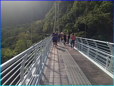 旅行社費了很多時間在電腦前搶名額,且必須繳交身分證才能進入,我們搶到第一梯次08:40,率先體驗這新的吊橋。