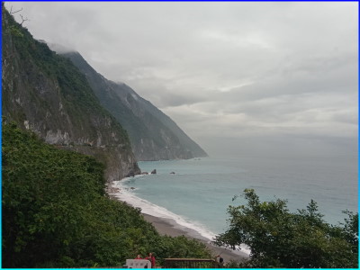 用完午膳已經下午二點多,驅車前往七星潭,這時下起大雨來,短暫停留後往清水斷崖出發,到達時,雨停了。